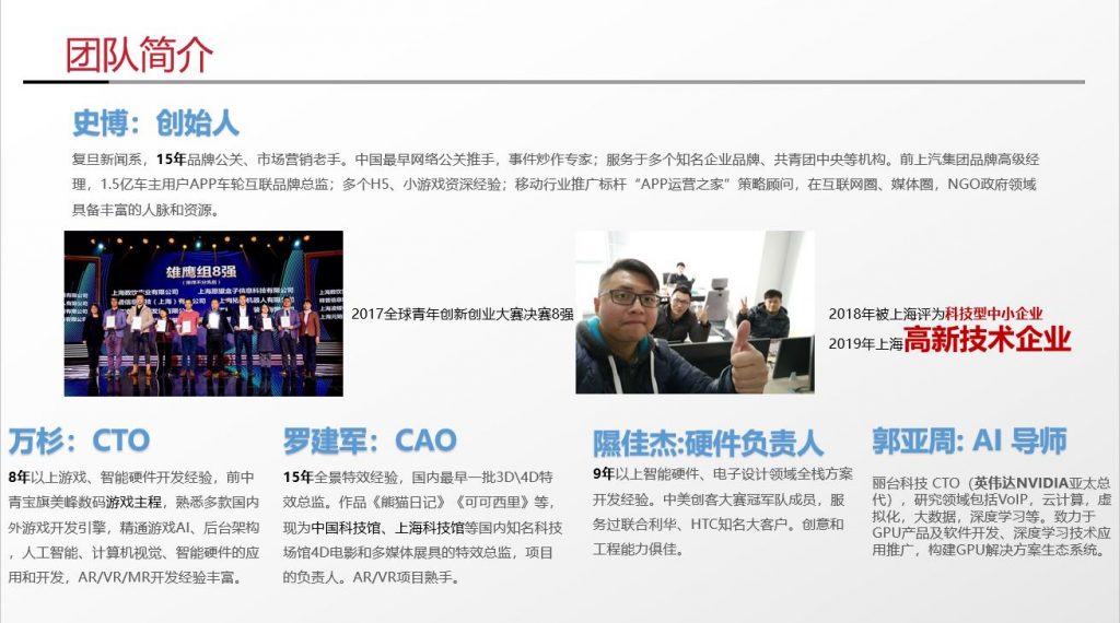 我团队成员在内容、技术和营销等多个领域拥有15年专家级技术经验,精通开发手机APP人、人工智能、VR、AR、计算机视觉、人机语音语义交互、智能硬件、内容IP、国际电商和线上运营等多领域的跨界经验,能更快速,更有效的实现跨界整合产品与方案,保证对玩具升级市场的支持与效率。