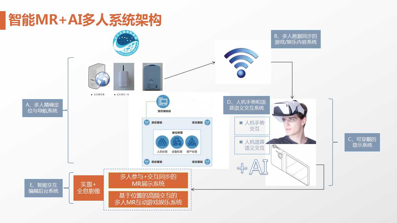 上海愿望盒子信息科技有限公司开的发具备自主知识产权的MR多人互动系统,是综合利用计算机视觉、超宽带定位、北斗定位、AI人工智能的交互技术等多种新技术,对AR增强现实进行集成创新,实现了适合室内外多种条件下的多人同步的与高精度定位虚拟3D动画形象进行交互。